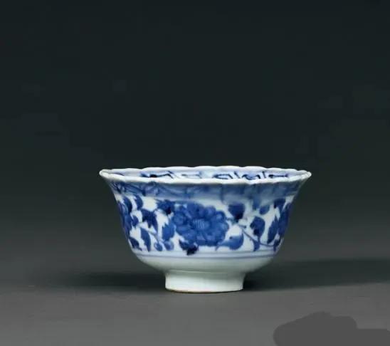 元 青花束莲纹模印菊瓣小碗,口径为7.9cm