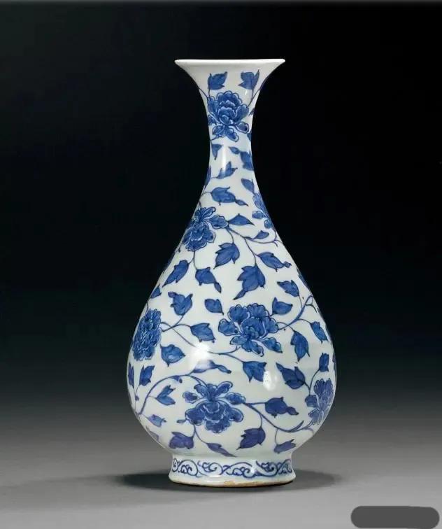 元 青花缠枝花卉纹玉壶春瓶,器形高优美,为元代玉壶春中高度较大者。