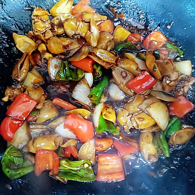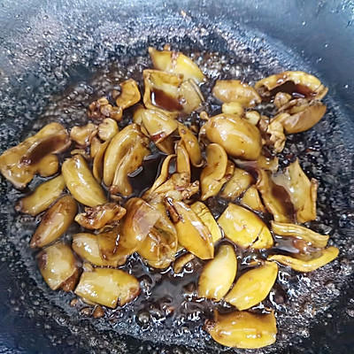 5、加入酱料汁继续翻炒三分钟左右,加入半碗水~