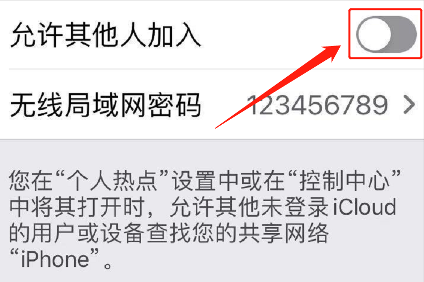 另外,如果手机连接了WiFi网络,是无法分享热点的,只能通过用户手机卡的数据才可以分享热点。当手机卡出现欠费或手动关闭热点的时候,热点就会失效。如果用户想要关闭热点,将热点功能中的“允许其他人加入”的开关关闭掉即可。