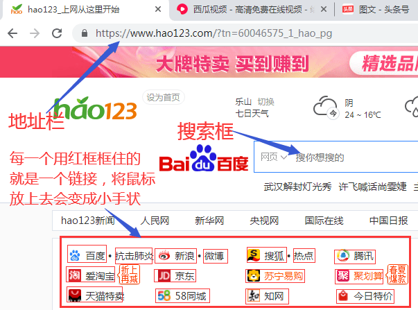 1、打开一个网址导航的网站:比如hao123网址之家、毒霸网址大全、114啦、2345网址导航等,这些导航网站都是类似的,它上面有各大网站的链接,同时还有搜索引擎(通常是百度)。当你觉得在这上面找你想要访问的网站不方便的时候,你还可以通过网页上的搜索引擎,输入关键字来搜索你想访问的网站。通常你会将它设置为主页,这样以后每次打开浏览器,就自动地显示你设置的这个导航网站,然后你就可以比较方便地上网了。