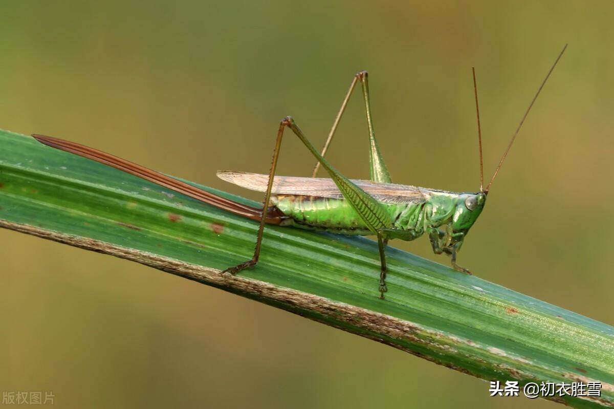 而随着田野稻麦的成熟,有蛐蛐引吭高歌,所谓盛夏到,蛐蛐叫。而这类昆虫繁殖能力又强,晚上听见高低起伏的蛐蛐叫,形成夏夜的交响曲,人们与之和谐共生。