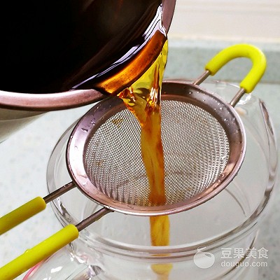 7、倒入红茶,用网筛隔去茶叶。