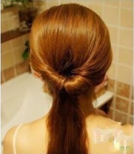步骤一:将女孩子梳理平顺的长直发,做低马尾扎发并对折,扎发要松散些。