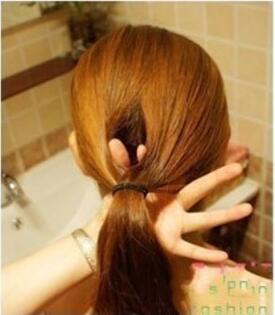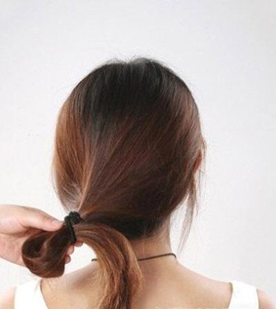 STEP2:将马尾的发尾从缝隙中穿过去。