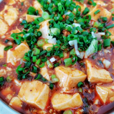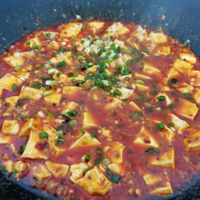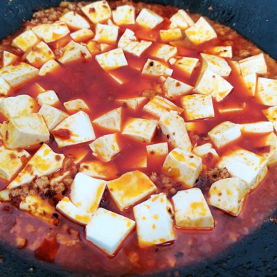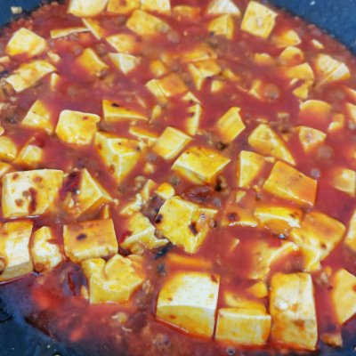 嫩豆腐 300g 猪肉末 50g 郫县豆瓣酱 一大匙 花椒 适量 辣椒面 适量 葱 适量 姜蒜 适量 淀粉 适量
