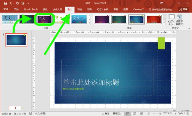 2、打开新建的PPT文档。选择顶置菜单栏的“设计”,选择PPT背景图。