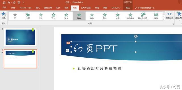7、如要对幻灯片进行动画设置,选择要设置的文字,单击顶置菜单栏中的“动画”,这时便可以选择动画效果。