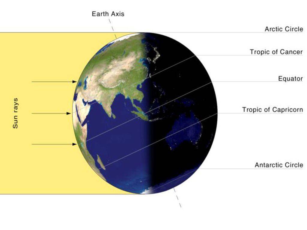 因为地球的自转相对于太阳以及黄道平面是倾斜的的缘故,夏季的时间便从12月开始到3月结束,冬季的时间则由6月持续到9月。9月22或23日是春分,3月20或21日则是秋分。南极点是南半球地区的中心