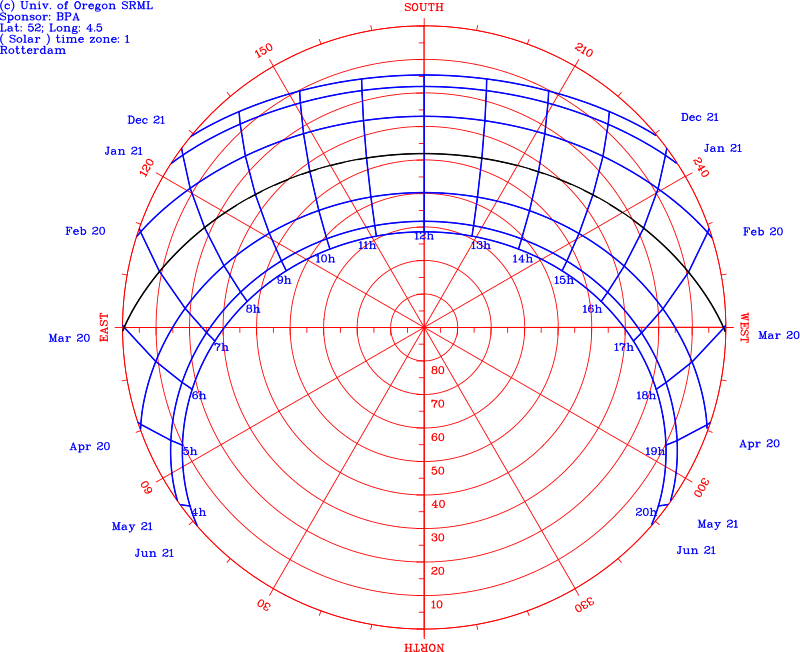 图解:鹿特丹纬度任何地点的太阳路径极坐标图