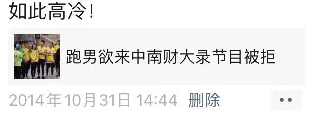 当初《跑男》大火,想要来中南财经录节目,结果被校领导一口拒绝。