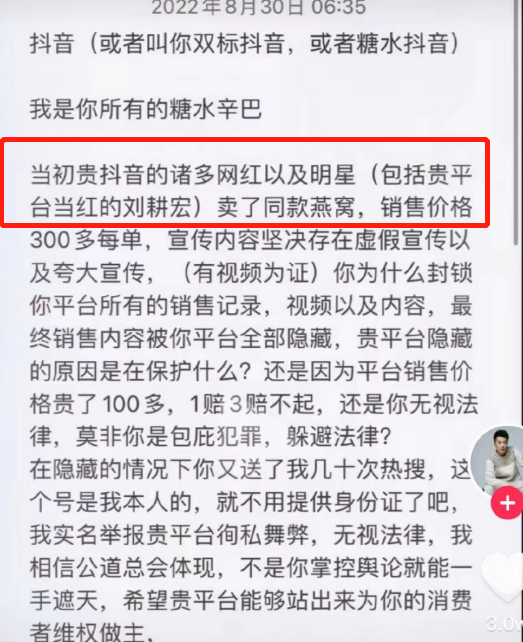 去年8月份,平台最火主播辛巴被爆卖假货燕窝。