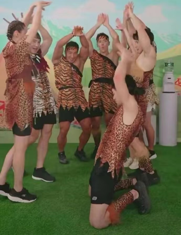 比如他们在直播间穿着动物纹路的衣服尽情热舞,释放天性。