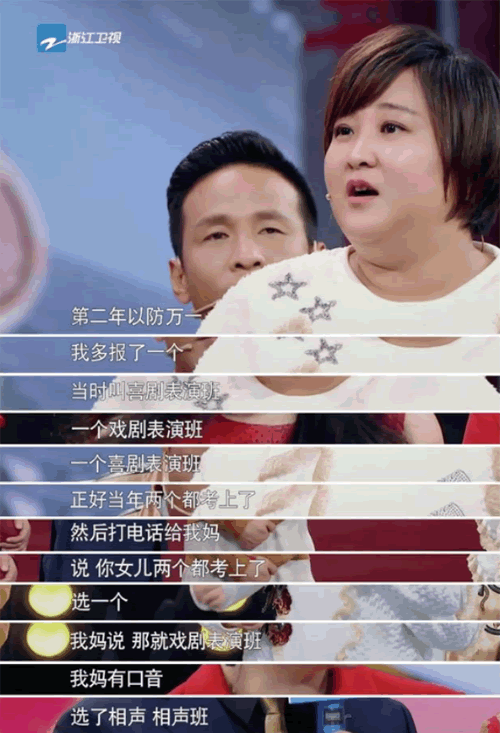 招生办的老师给贾玲家打电话,因为贾玲的妈妈口音重,老师听成了“喜剧表演”,从而决定了贾玲的人生走向。