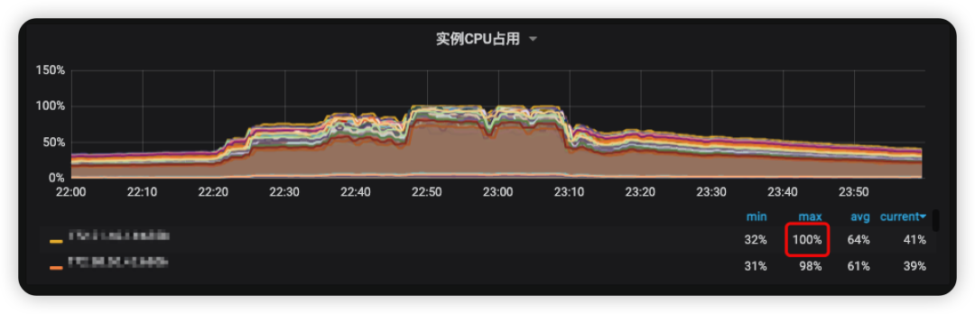 动态综合页比较容易因为高热事件,引起大量用户持续消费feed流,导致线上拉取动态时间线feed流接口快速飙升至平时峰值2~3倍以上而大量超时,较多用户无法正常消费其feed流。从监控上发现outbox(用户发件箱)服务依赖的redis集群大量实例CPU使用率皆超过了95%甚至达到100%(如图1)。因此,瓶颈在于outbox redis集群压力太大,无法扛住过大的高热流量。而痛点在于redis集群无法高效快速扩容,因此,我们遇到此类情况通常只能被迫降级限流,以防情况进一步恶化。