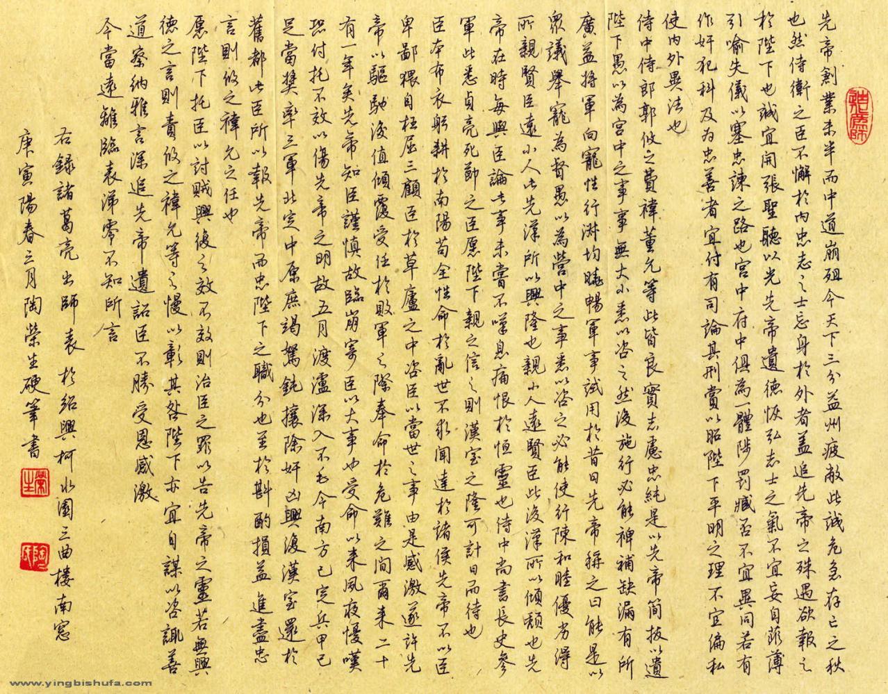 夸其九、多才多艺有发明。从前面的溢美之词中,我已认定诸葛亮是中国古代优秀的政治家、军事家、战略家、外交家、经济学家、法律学家等等,可他的才能还不止于此。“木牛流马”是否现在四川俗称的“鸡公车”我不清楚,但作为一项运输工具的发明,诸葛亮值得怀念。“损益连弩”的发明使得蜀国的战斗力大增。诸葛亮不是我们通常意义的文学家,可他的《出师表》已经成了千古绝唱,再没人写出这么优秀的表来。而诸葛亮的书信札记兵法等,也成了千古的名篇被人不断引用。诸葛亮不是艺术家,可有资料表明他音乐书画都有所成就。