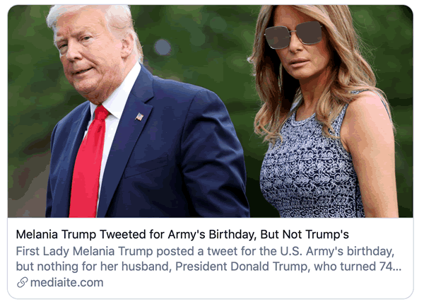 然而,第一夫人梅拉尼娅直到6月15日才在社交媒体上公开祝福特朗普。但她确实登录了推特,因为她转发了一条美国陆军纪念第245个生日的推特-6月14日也是美国国旗日(Flag Day)以及美国军队的诞生日(US Army Birthday)。