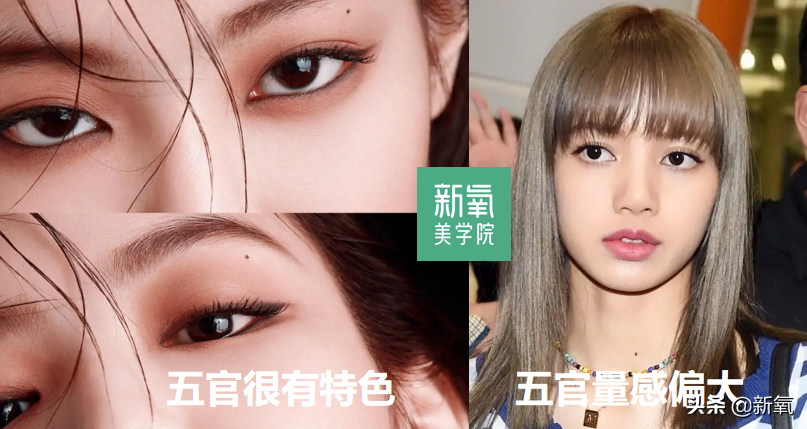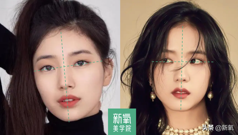 三庭五眼比例匀称、面部重心居中、五官量感适中。