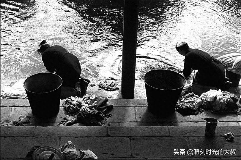 1954年,萨宾·魏斯(Sabine Weiss)在巴黎第13区的一条名为Terres-au-Curé的小街上行走。她正在撰写有关工人祭司的报告,这些祭司是从事工厂轮班工作的政治上活跃的天主教神父。她遇到了两个孩子,他们从喷泉里提着一桶水:“这个小男孩穿着贝雷帽和袜子,但是没有裤子,因为那时孩子们没有穿裤子。小女孩有一头短发,被发夹固定。她穿着围裙和拖鞋。我喜欢这张照片,因为它确实给人以时代感。我快百岁了,所以我看到了很多不同的东西,现在已经不见了!”