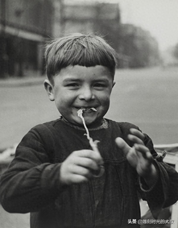 用双耳咧嘴笑着描绘这个孩子,调皮地嚼着口香糖并满意地抚摸着他的小手。这是魏斯是用中型Rolleiflex相机在首都漫步时拍摄的。