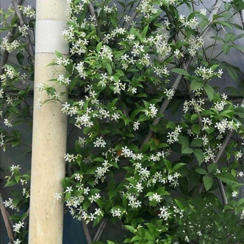 而且它种植起来非常的简单,既耐冻又耐热,即便是零下二三十度的环境之中也不会冻死。因为它生长的太泼辣,所以,适合地栽,做成花墙,拱门,如果盆栽风车茉莉,需要给它搭个架子,经常修剪,也可以做成棒棒糖的风车茉莉,花开满盆,清香又漂亮;它是多年生的植物,可以养到很多年,越养花越多。