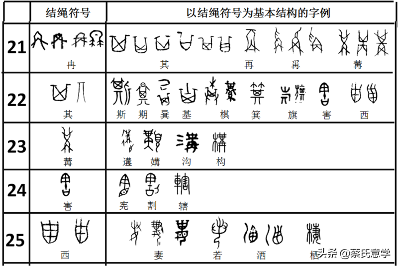表中所摘录的“冉”、“其”、“西”的甲骨文字形其实都是指一个东西,就是契约时代、结绳时代,所使用的日期约定方法。