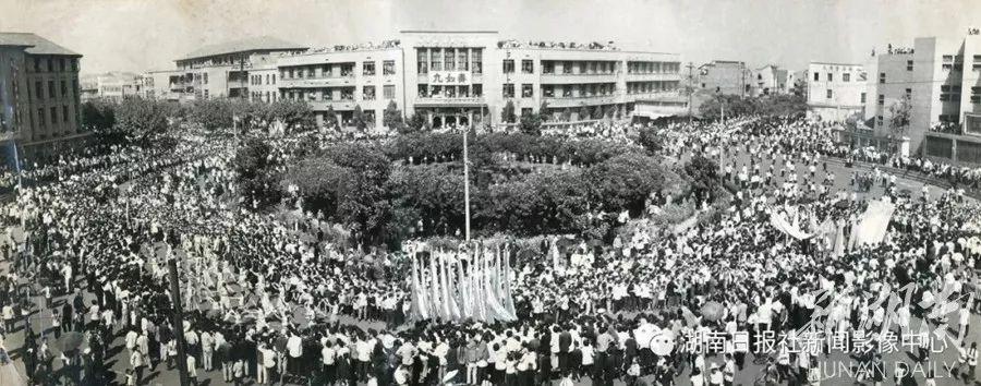 无论怎么走,五一广场总是游行活动必到并且掀起最高潮的地方。游行时长沙市万人空巷,市民几乎全部挤到街头观看。借用现代的描写方式,就是你不是在游行就是在看游行。游行内容也十分精彩,有肩扛手举的宣传牌匾,有展示各行各业建设成就的彩车,也有精神抖擞肩背步枪走着整齐步伐的省会民兵,还有欢呼雀跃手持花束的少年儿童。