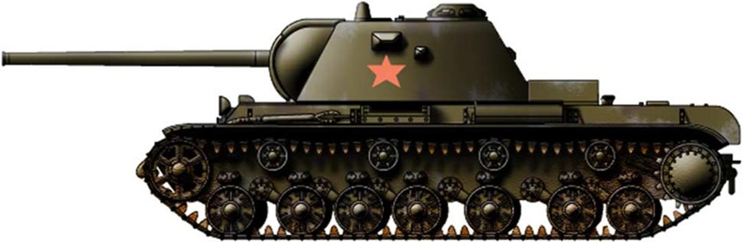 最后一款投入量产的KV坦克也就是KV-85了,或者称呼其为IS-85,IS-1都可以。这款坦克是在KV-1和KV-1S坦克被德国动物园暴打了一顿之后诞生出来的应急产品,坦克依然沿用了KV-1S底盘,根据生产批次的不同分别装备了S-31 85毫米炮和D-5T 85毫米炮,尽管85毫米炮受制于炮弹的影响依然无法有效的击毁虎式坦克,但是总算能够对虎式坦克产生威胁了。