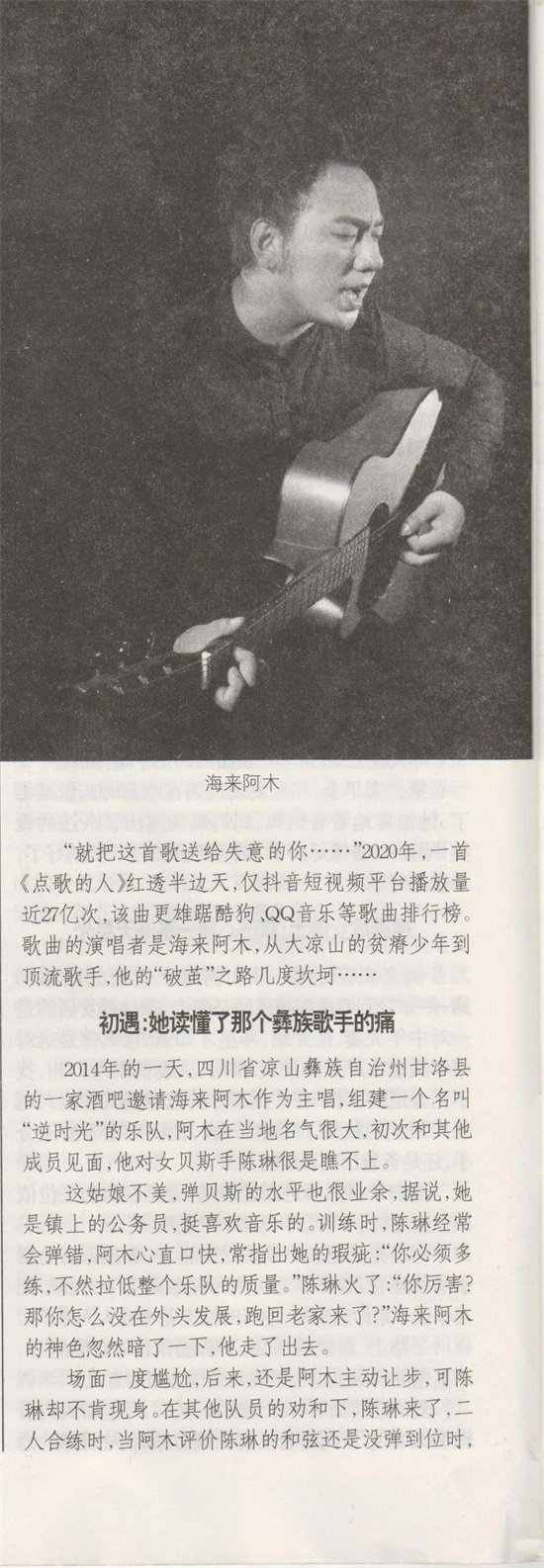 2020年11月末,被业界公认的中国最具实力音乐唱作人海来阿木,受邀接受了《知音》杂志的独家专访,并在《知音》2020年11月月末出版发行的杂志中,被封面首位推荐,用4页版面的大篇幅,详细讲述了海来阿木从心怀梦想,到破茧成蝶的心里路程,期间贯穿的亲情和爱情,令人深受感动,从另一个侧面,让人更加立体的了解到了海来阿木的音乐艺术人生……