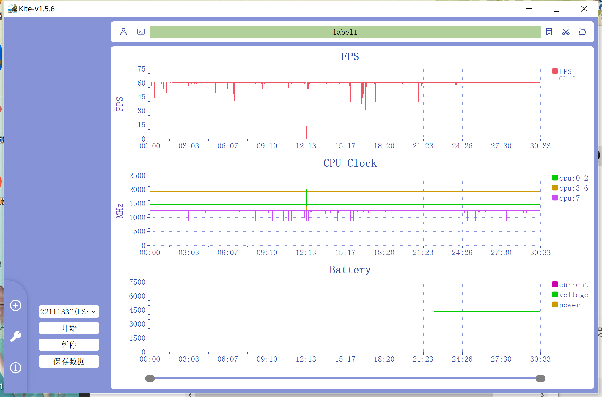 首先是《原神》,在半小时的跑图和野外刷怪流程中,小米13的帧率几乎全程稳定在60帧上下,波动频率不大。