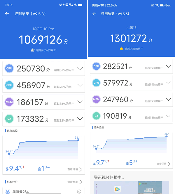 不过由于小米13的机身尺寸较小,因此在散热表现方面确实稍差了一些,25分钟后就能明显感到顶部的边框部分稍稍有些烫手(43℃),不过机身背部的温度并不高,属于完全可以接受的范围(39.3℃)。如果是尺寸(散热面积)较大的小米 13 Pro,想必温度方面的把控应该更加出色。