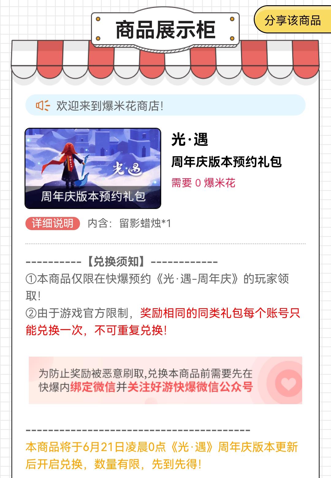 现在到好游快爆APP内搜索并预约“光遇-周年庆”版本,待游戏更新后可到爆米花商店获取