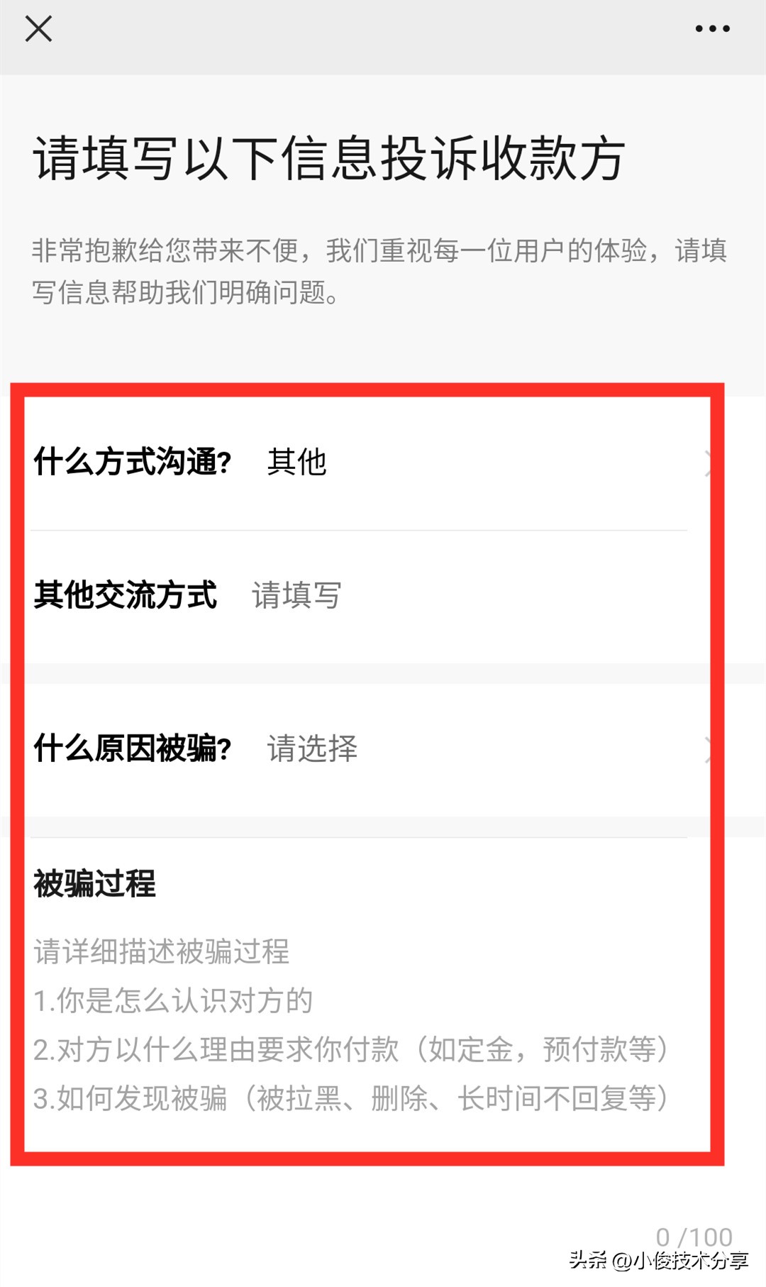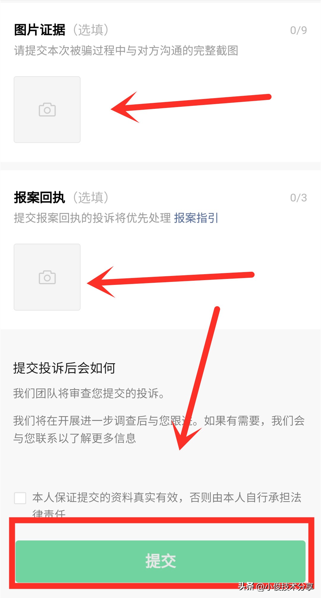 在这里边,会要求我们填写一些信息资料来配合相关部门找回我们的转账资金,比如说沟通方式,交流方式,被骗方式,以及被骗过程,我们按要求一一填写就可以了,接着我们还要上传图片证据,比如转账截图或者完整的聊天记录截图,一切填写完成之后,我们点击提交按钮就可以了,提交完成之后,就会进入审核流畅,我们只需耐心等待回执就可以!