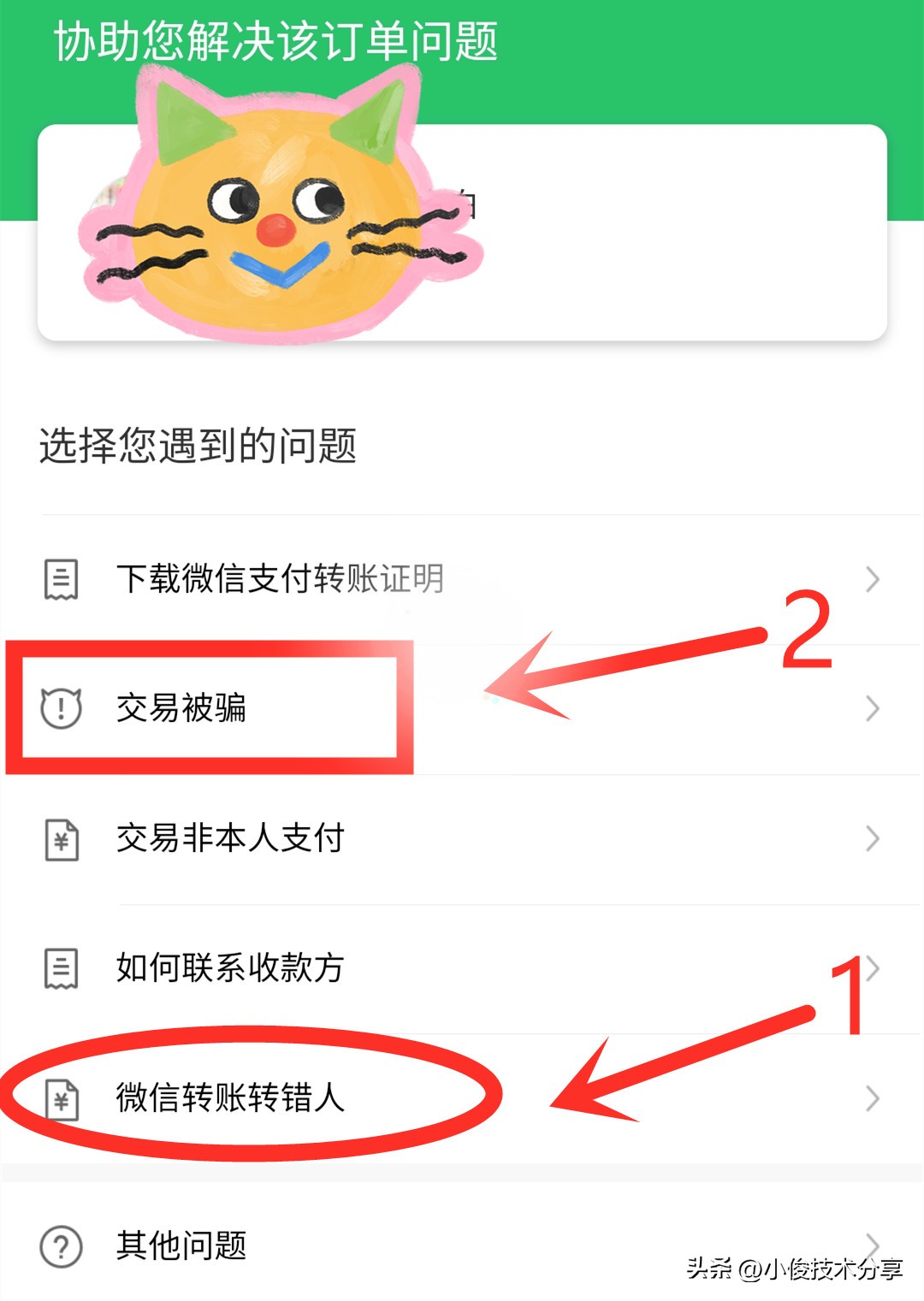 这时就会跳出【协助您解决该订单问题】的页面,在这里我们直接选择【微信转账转错人】选项,然后我们按照页面提示来解决就可以了!