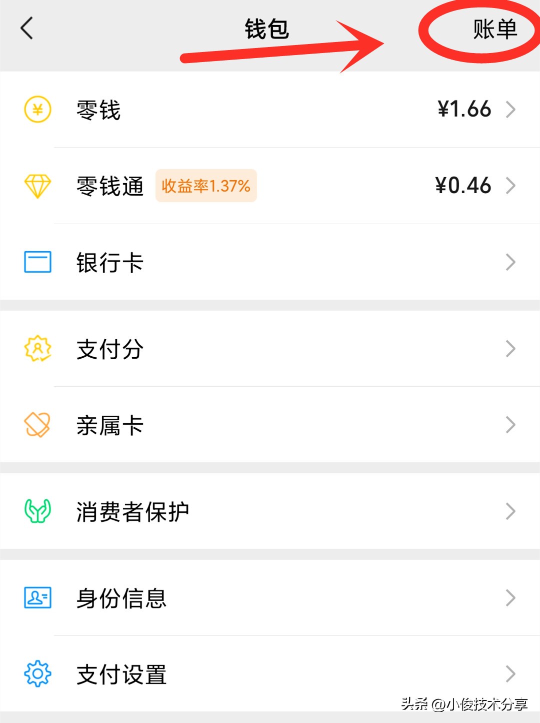 点击打开钱包之后,我们可以看到在右上角有一个账单的选项,此时我们点击这个【账单】