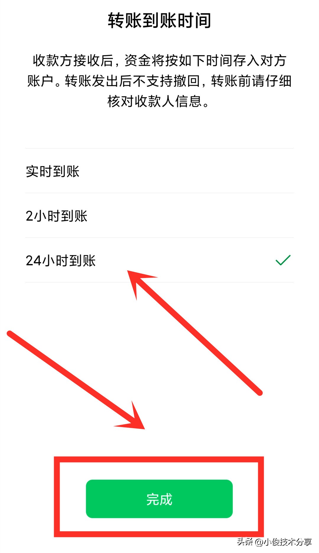 此时就可以设置转账到账时间了,我们设置为24小时就行了!