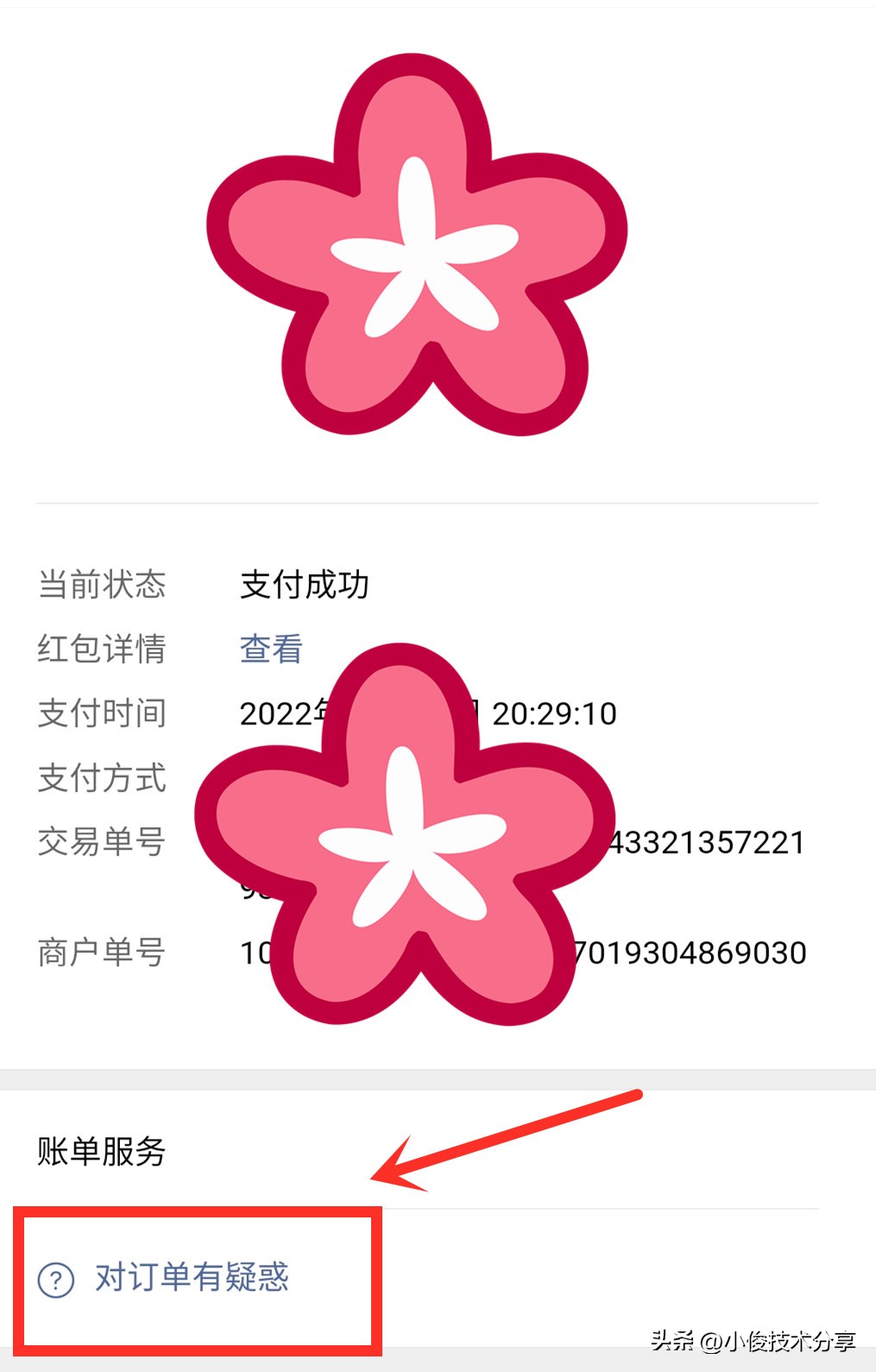 打开【账单】页面之后,就可以看到我们所有交易的账单,此时我们找到被拉黑的这笔账单,并且将它打开,接着,我们就可以看到该笔账单的详细记录,其中包括转账时间,支付方式等等,此时我们找到下面的【账单服务】,然后点击【对订单有疑惑】这个开关
