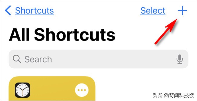 在“所有快捷方式”屏幕上,点击加号(“ +”)按钮。