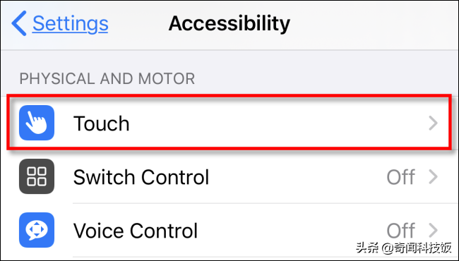 在设置中,导航至辅助功能>触摸。