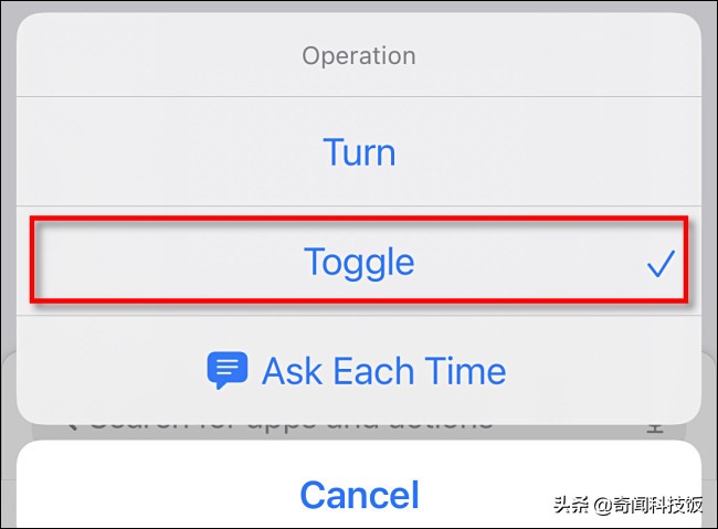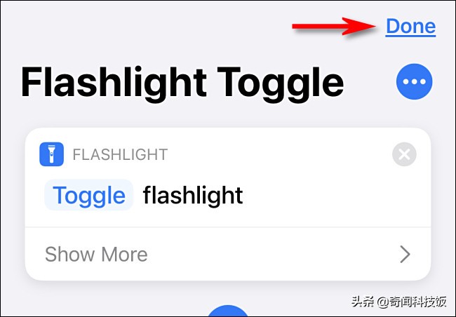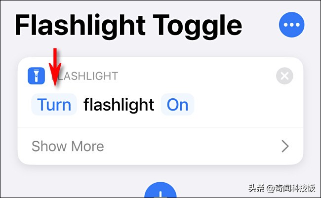 返回操作列表,“手电筒”操作现在应显示为“切换手电筒”。这意味着,如果您运行快捷方式且手电筒关闭,则手电筒将打开。如果在打开手电筒时运行快捷方式,则手电筒将关闭。您正在编程!