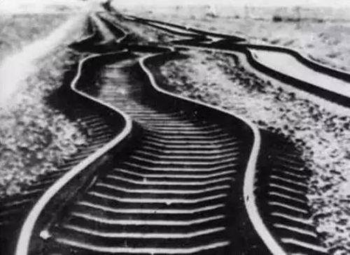 △大地震后被震弯的铁路