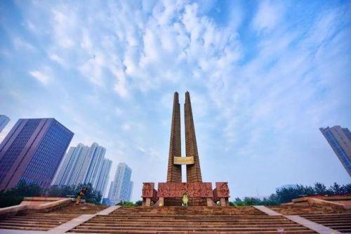 △位于唐山市中心广场的“唐山地震纪念碑”,昂然挺立的纪念碑象征着唐山人在灾难面前永不屈服的精神和重建家园的决心。