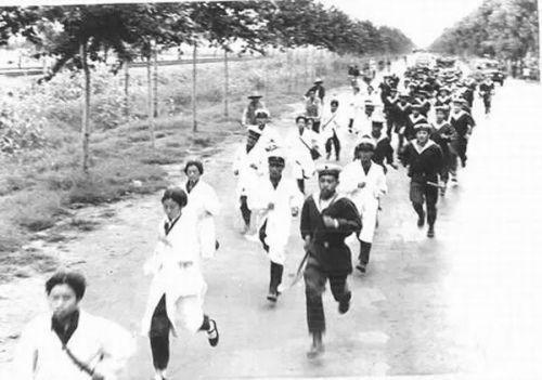 △跑步前往唐山救援的解放军