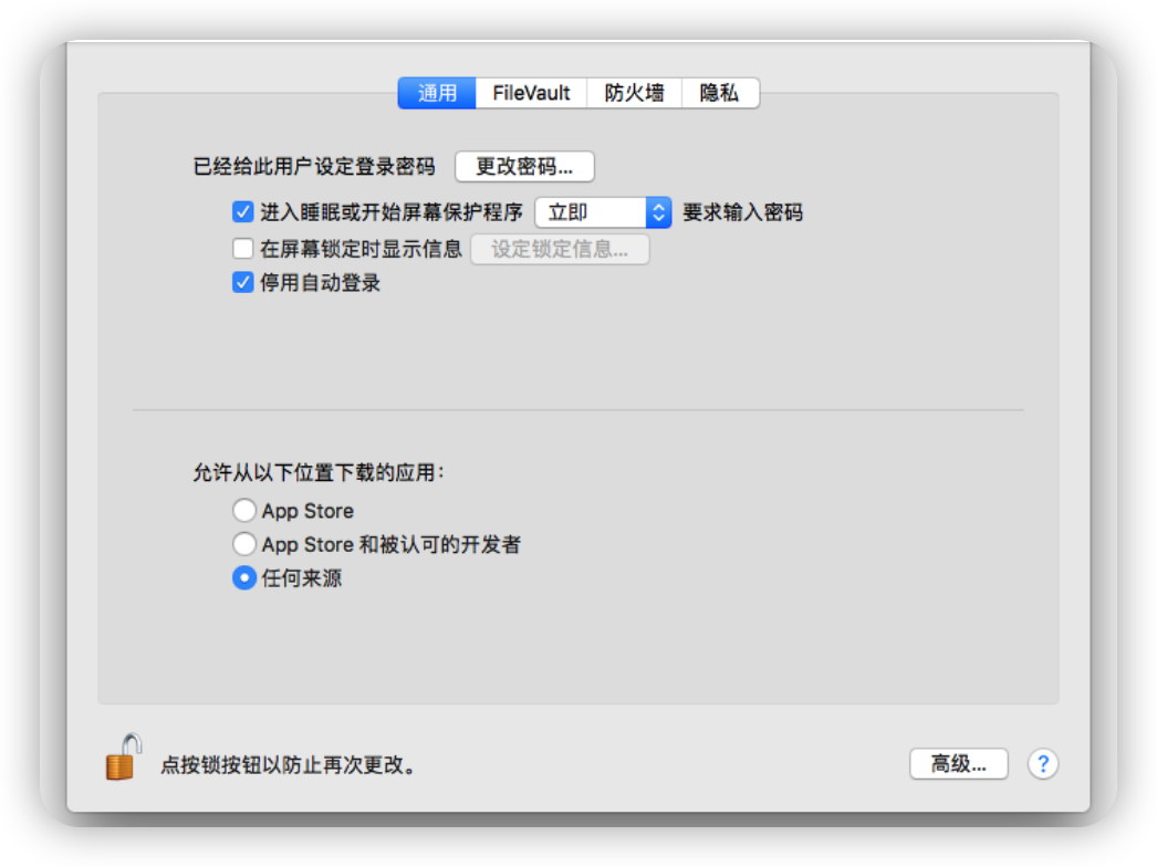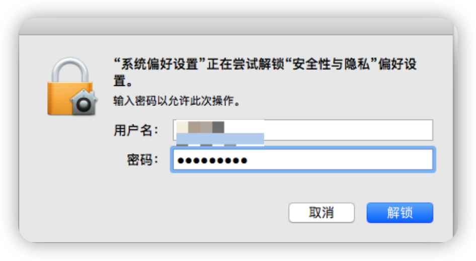 点击上图 安全性与隐私 界面中左下角的黄色 进行安全验证,输入你的电脑的账号和密码