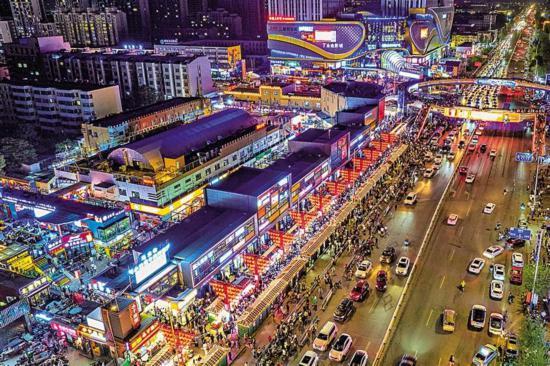 傍晚的银川市西夏区怀远观光夜市人声鼎沸。
