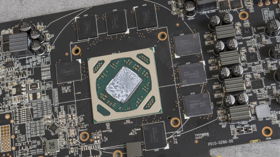 标准规模的PCB板,再看布局和面积怎么都很像RX 580 2048SP,简直就是一个模板,猜测核心面积也是相同大小的232mm²。