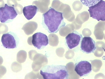 骨髓活检:考虑B细胞淋巴瘤,建议MYD-88基因突变及其他检查综合除外淋巴浆细胞淋巴瘤可能。案例二患者血小板进行性下降,已到危急值,病情危重。白细胞总数、淋巴细胞比例继续升高,散点图在成熟淋巴细胞区域亮度明显增加,说明存在一群胞体大小、荧光强度非常相近的细胞。外周血涂片镜检成熟淋巴细胞73%,形态大部分如图: