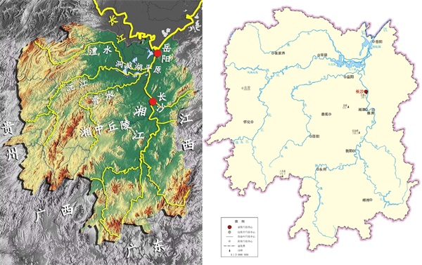 由于洞庭湖的存在,使得洞庭湖周边地区以平原和丘陵地形为主,地形相对平坦,加上洞庭湖与长江及其他江河相连,对外交通十分便捷。地形和水文条件促使洞庭湖周边地区经济和文化都十分发达,发展历史悠久,因而这一地区也被称为“湘中”。此外,湖南省西部地区多为山地地形,属于雪峰山脉,是东南丘陵和云贵高原的过渡地带,这一地区被称为“湘西”。