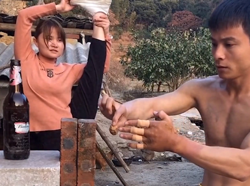 一个核桃两块砖,趁着核桃不注意的功夫,就用隔山打牛的功夫把砖劈成两半,而寸拳的要领就是既快又准,薄振亚的出拳速度也已经快到,甚至在镜头下都是模糊的。