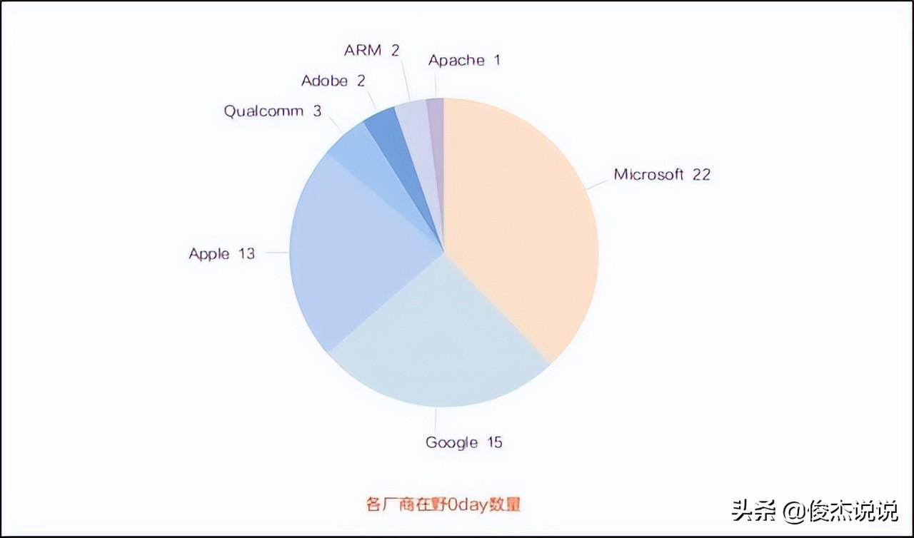从在野0-day漏洞涉及厂商的分布情况来看,2021年被披露最多的厂商是微软,其次是谷歌和苹果。